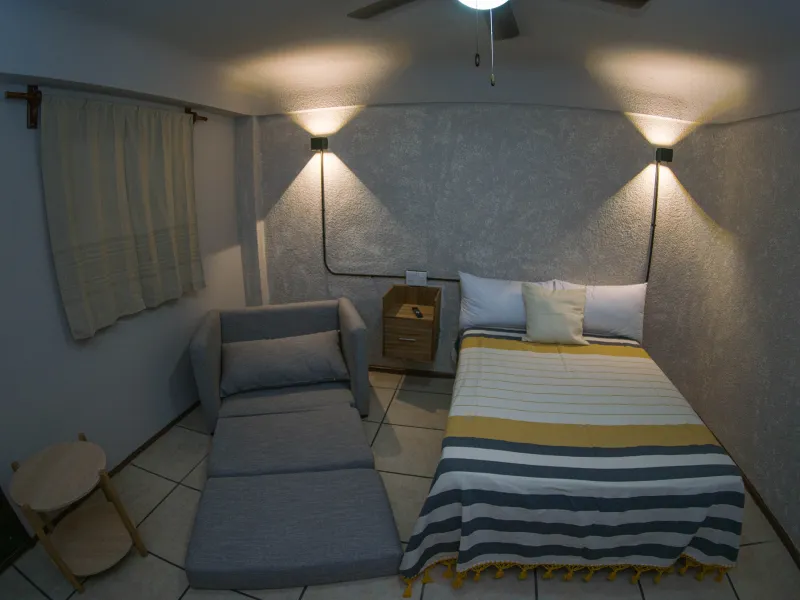 Nuestra habitación sencilla te ofrece todo lo necesario para una estancia cómoda y funcional. Está equipada con un sofá cama ideal para relajarte, una Smart TV para disfrutar de tus programas favoritos, y conexión WiFi de alta velocidad con Starlink, garantizando una experiencia de entretenimiento y trabajo sin interrupciones. Un espacio acogedor, pensado para tu confort.