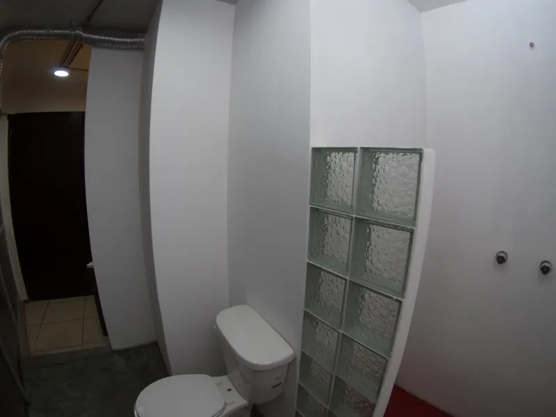 El baño completo está ubicado por separado de la habitación, ofreciendo mayor privacidad y comodidad. Cuenta con ducha, lavabo y WC, además de todos los elementos esenciales para tu bienestar durante la estancia.